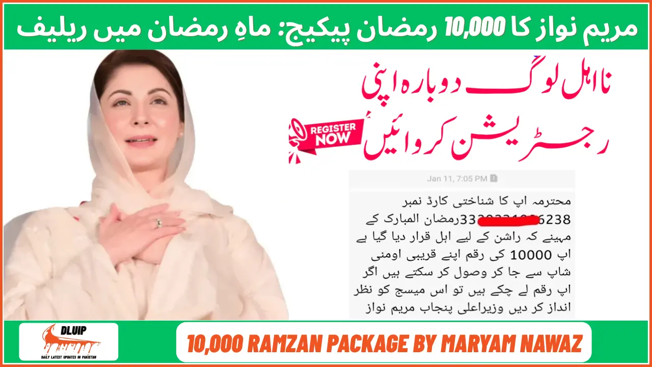 The 10,000 Ramzan Package is a one-time financial relief announced by Punjab Chief Minister Maryam Nawaz to support low-income households. It is designed to provide direct cash assistance during the holy month of Ramzan.